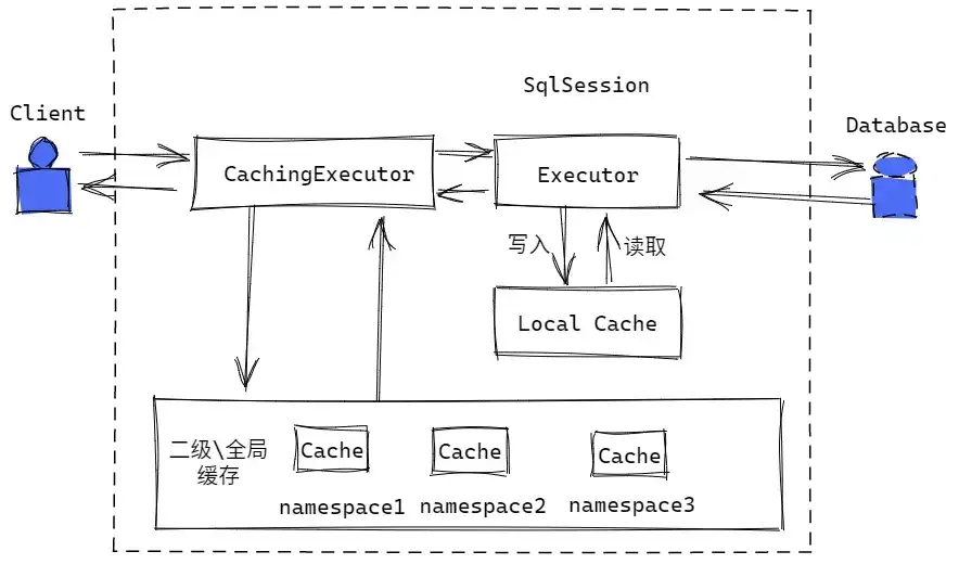 每个 SqlSession 中都有一个 Executor,每个 Executor 中又有一个 LocalCache,当我们进行查询操作时,MyBatis 根据当前执行的语句生成 MapperdStatement,然后在 Local Cache 中进行查询,如果存在(命中),直接返回给用户。若缓存中不存在(未命中),则和数据库交互查询数据,将结果写入 Local Cache,同时返回给用户。