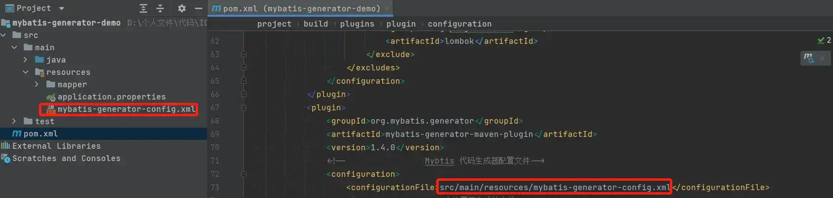 </dependencies>接着我们继续引入 MyBatis Generator 的相关配置。