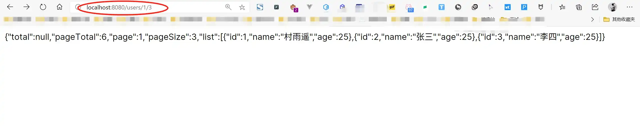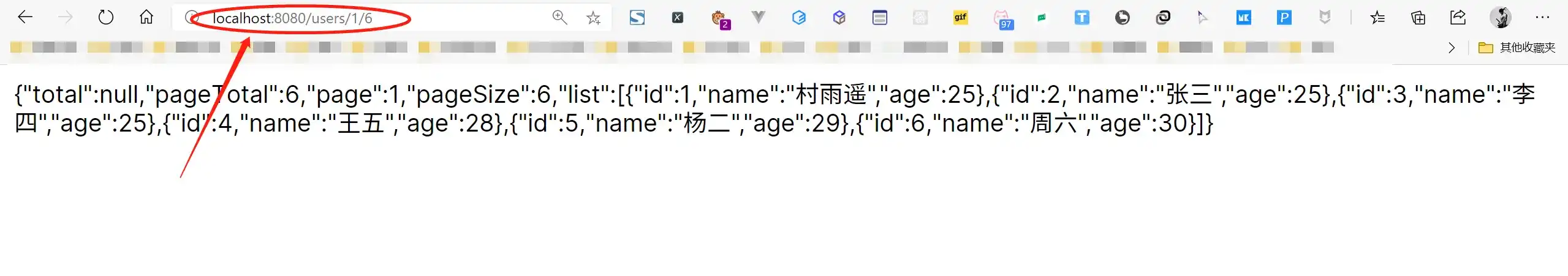 完成上述所有步骤之后,在浏览器中访问 http://localhost:8080/user/{page}/{pageSize},就可以在网页中显示对应 id 的 User 对象的所有信息;