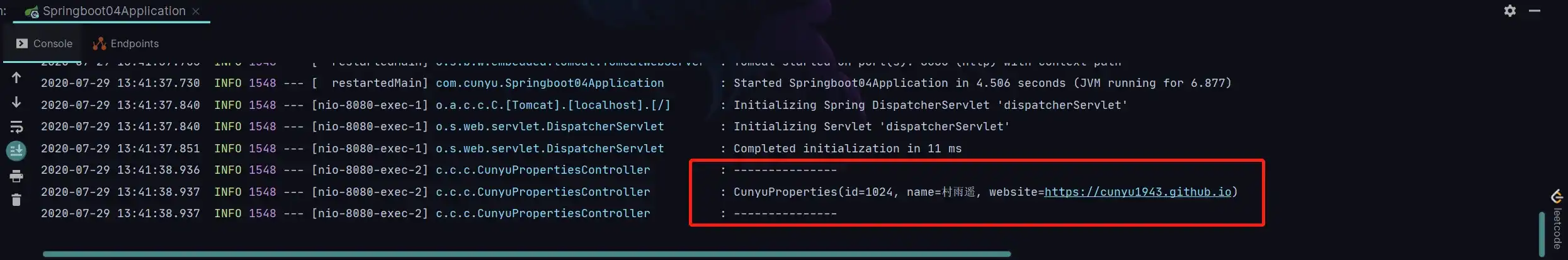 cunyu.website=https://cunyu1943.github.io- 创建实体类来映射我们配置的属性;