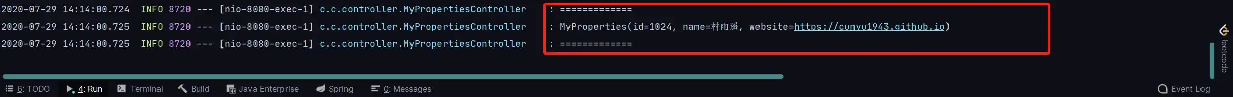 my.website=https://cunyu1943.github.io- 定义实体类,用于映射自定义配置文件中的内容;