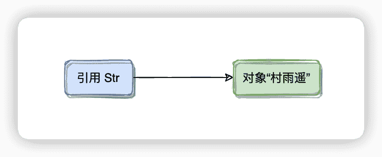 String str = new String("村雨遥");其中 str 既是一个变量,也是一个引用,指向一个值为 "村雨遥" 的 String 对象,后续如果我们要访问这个 String 对象,就需要使用 str 这个引用来代表它。