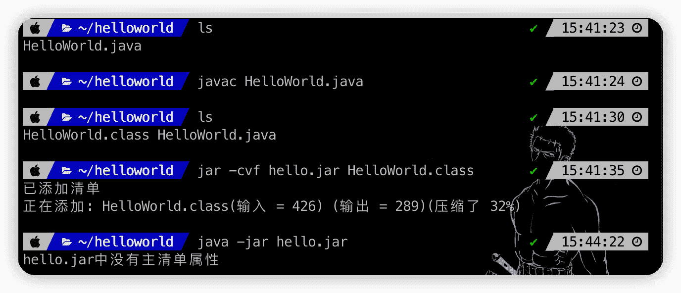 不过那是借助工具来生成的,今天我们来看看如何利用 JDK 所提供的命令行工具,来创建一个能打印出 Hello World! 的 jar 包。