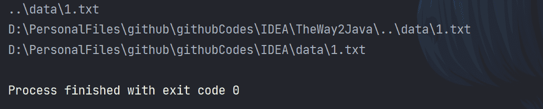 File file1 = new File("D:/PersonalFiles/github/githubCodes/IDEA/TheWay2Java/IOStream/data/1.txt");