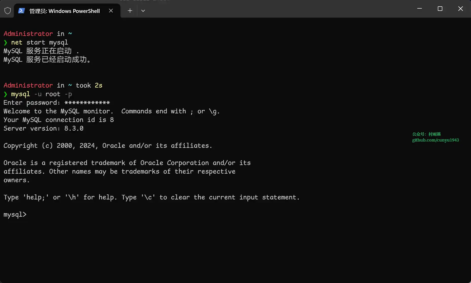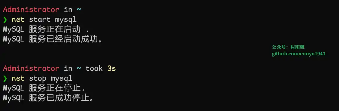 最后,我们就可以通过以下命令来启动和关闭 MySQL 服务了。