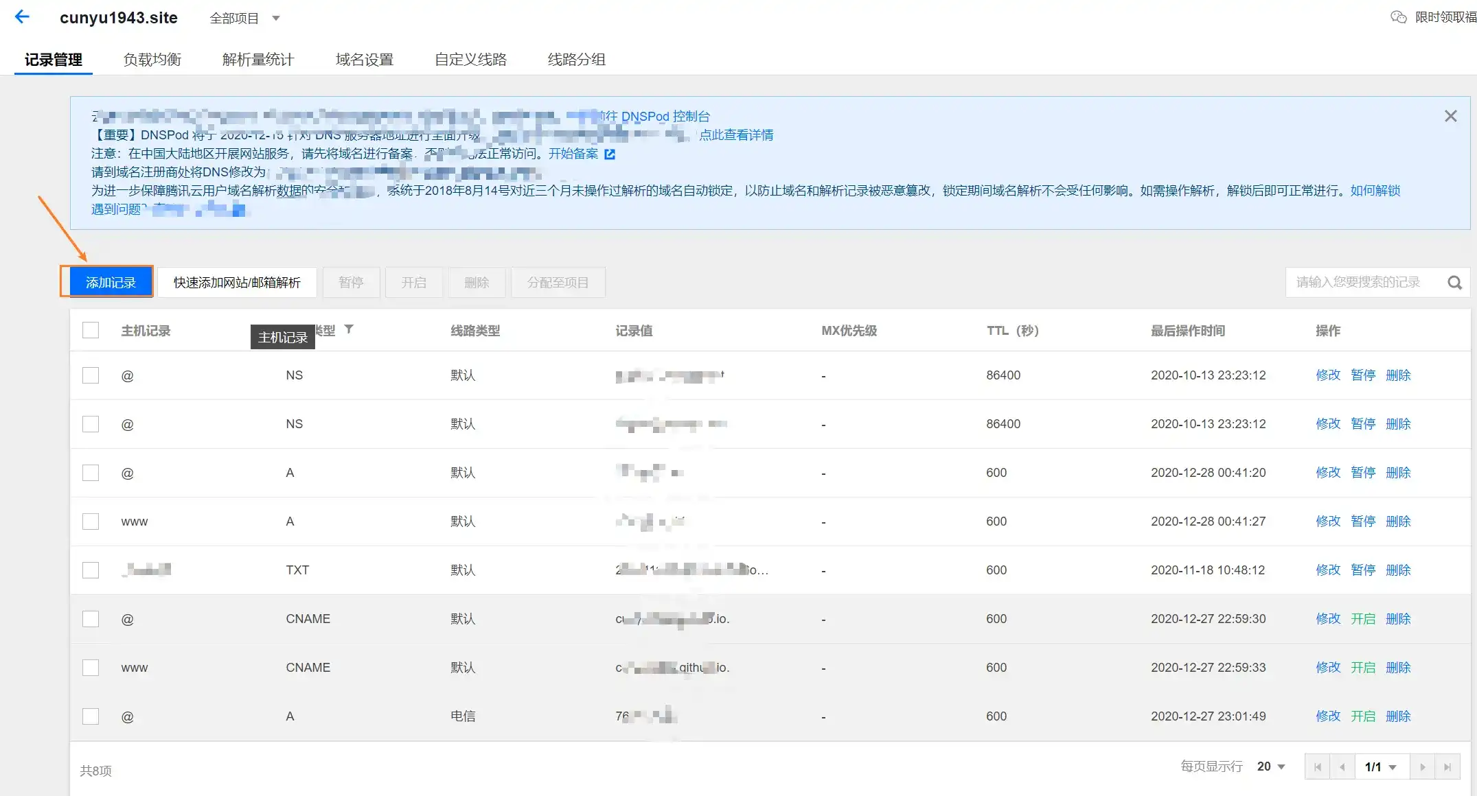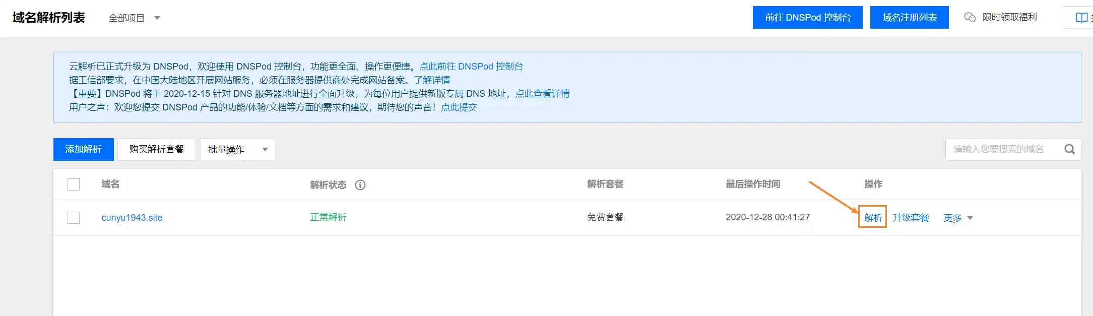 因为我的域名是在腾讯买的,所以这里以腾讯为例;