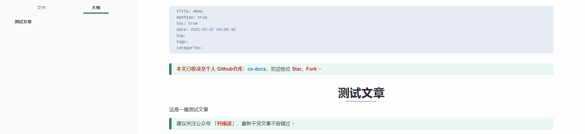 GitHub仓库,等过一会儿之后,访问即可看到刚才推送的新文章了!