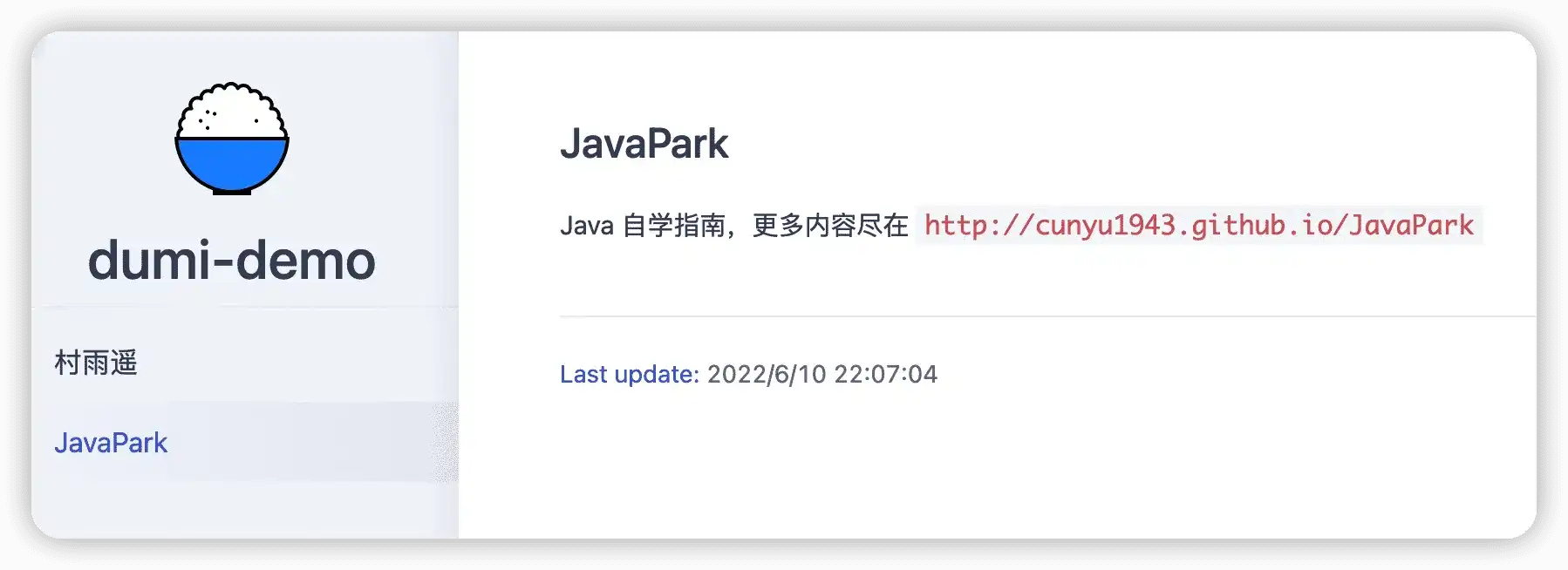 以上就是利用 dumi 搭建文档型网站的具体过程了。当然,除了作为博客之外,我们还可以利用它来进行前端组件化开发,不断给你的网站添加新功能!