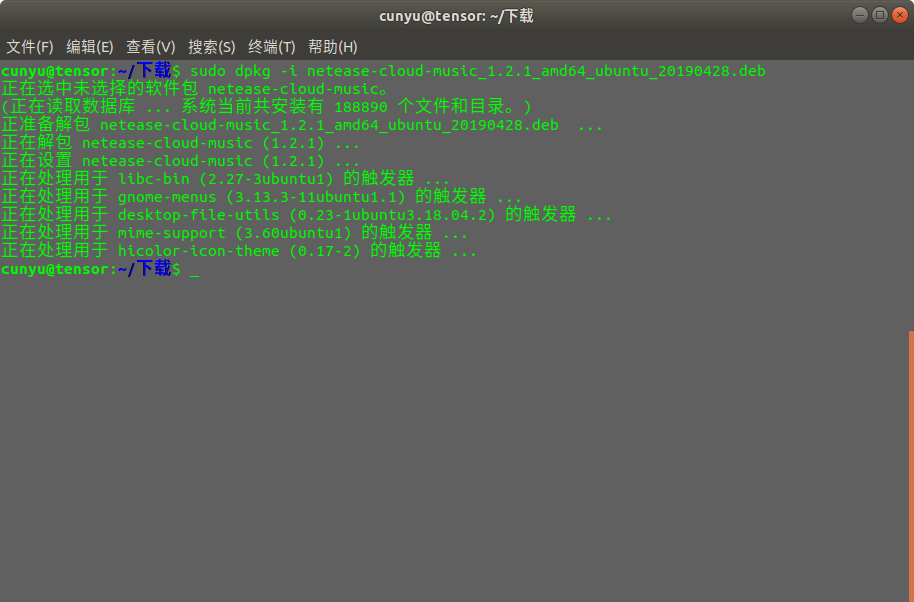 sudo dpkg -i netease-cloud-music_1.2.1_amd64_ubuntu_20190428.deb