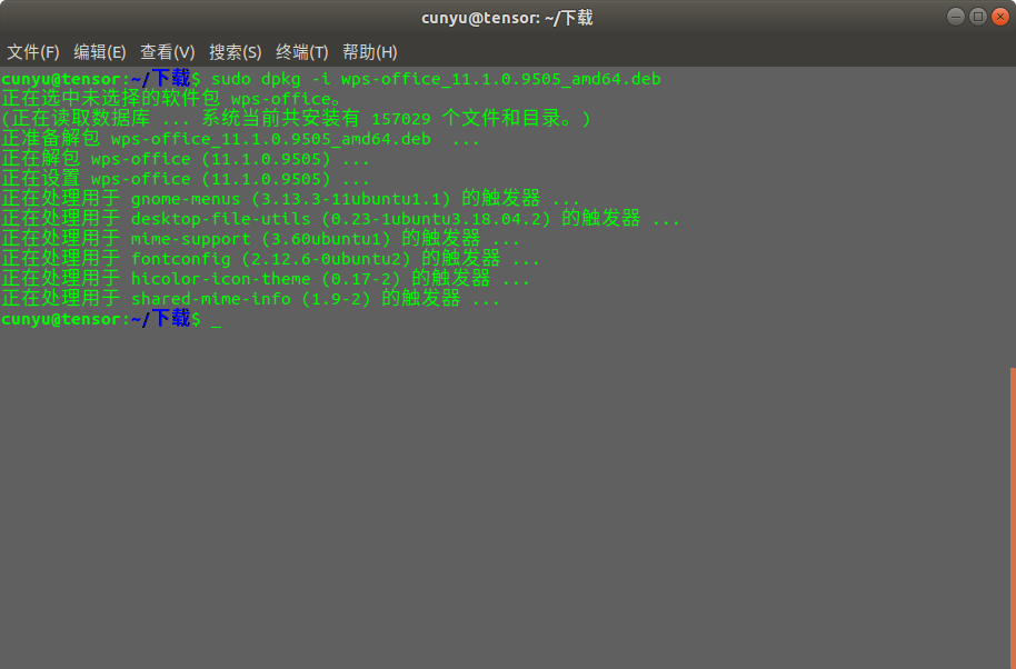 sudo dpkg -i wps-office_11.1.0.9505_amd64.deb