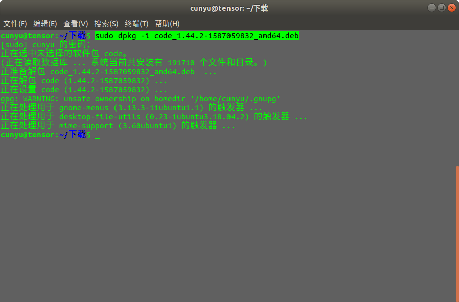 在终端中使用如下命令安装即可;