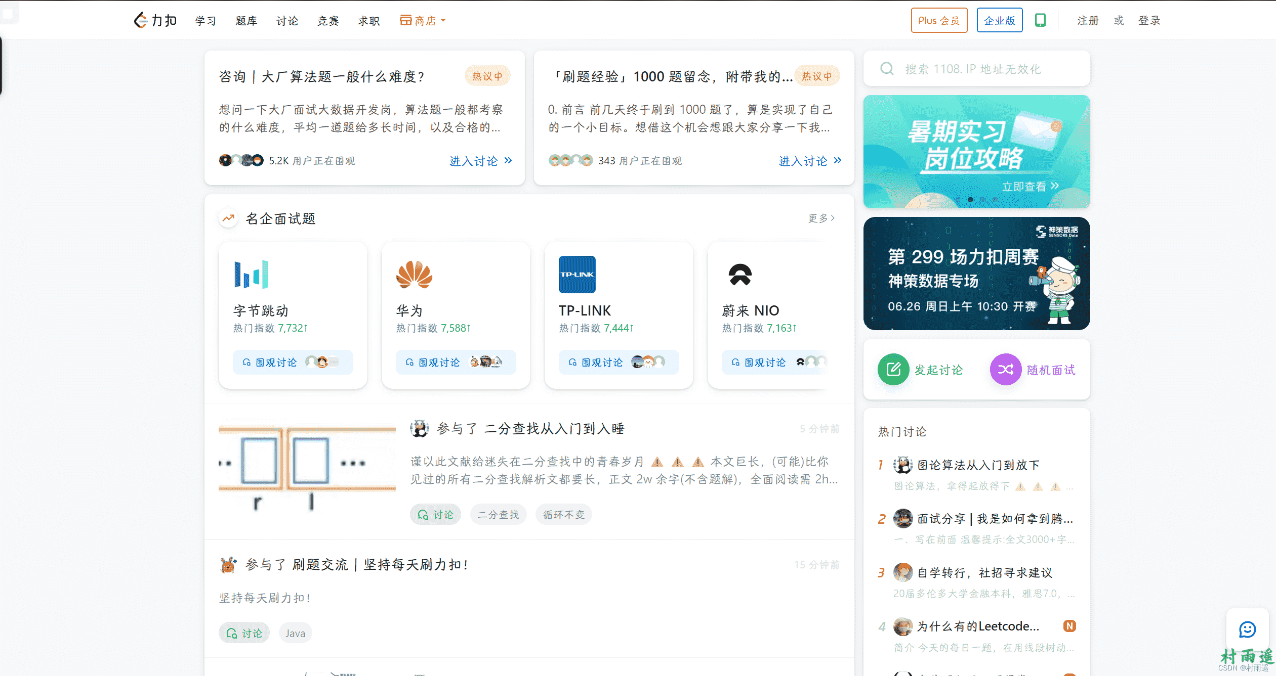 全球极客挚爱的技术成长平台,与其说国内在用,还不如说是因为国外一线科技公司如谷歌、评估、Meta 等公司都在这里选拔人才,所以才引入的国内。如果的英语能力还 OK,那么强烈推荐你来这里练习算法,和来自世界各地的程序员们 Battle 一下,谁才是王者!