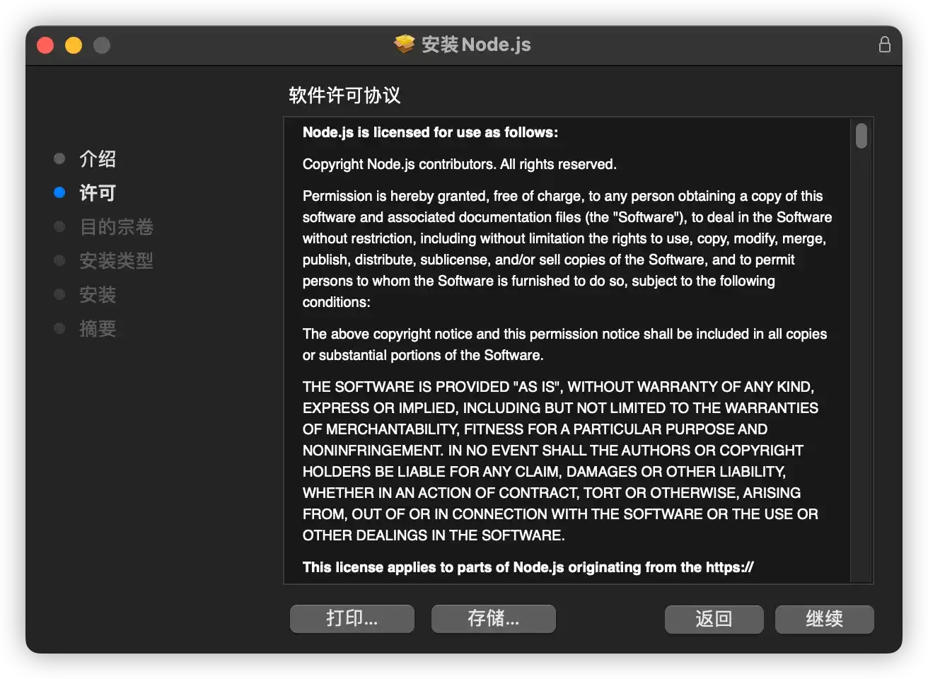 2. 点击继续,会提示软件的相关许可协议。