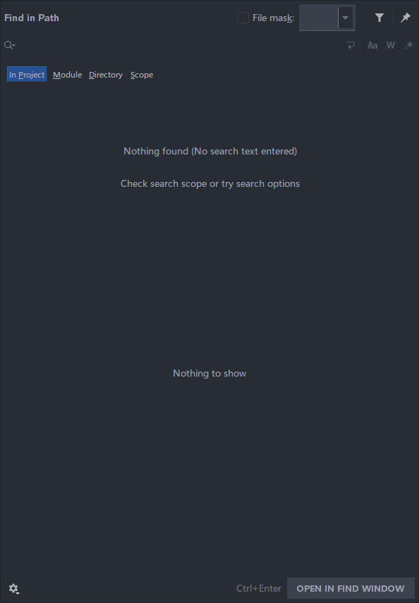 通过双击两次 Shift,来实现万能查找,既可以实现文件查找,也可以实现菜单、操作查找,但是要注意的是它不能进行文件内容查找;