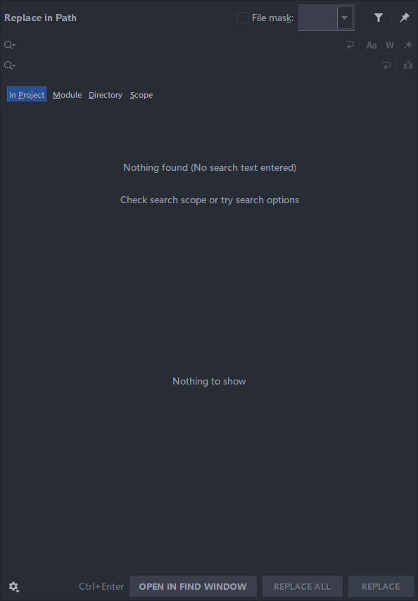 Ctrl + F进行查找,快捷键Ctrl + R进行替换;全局文件