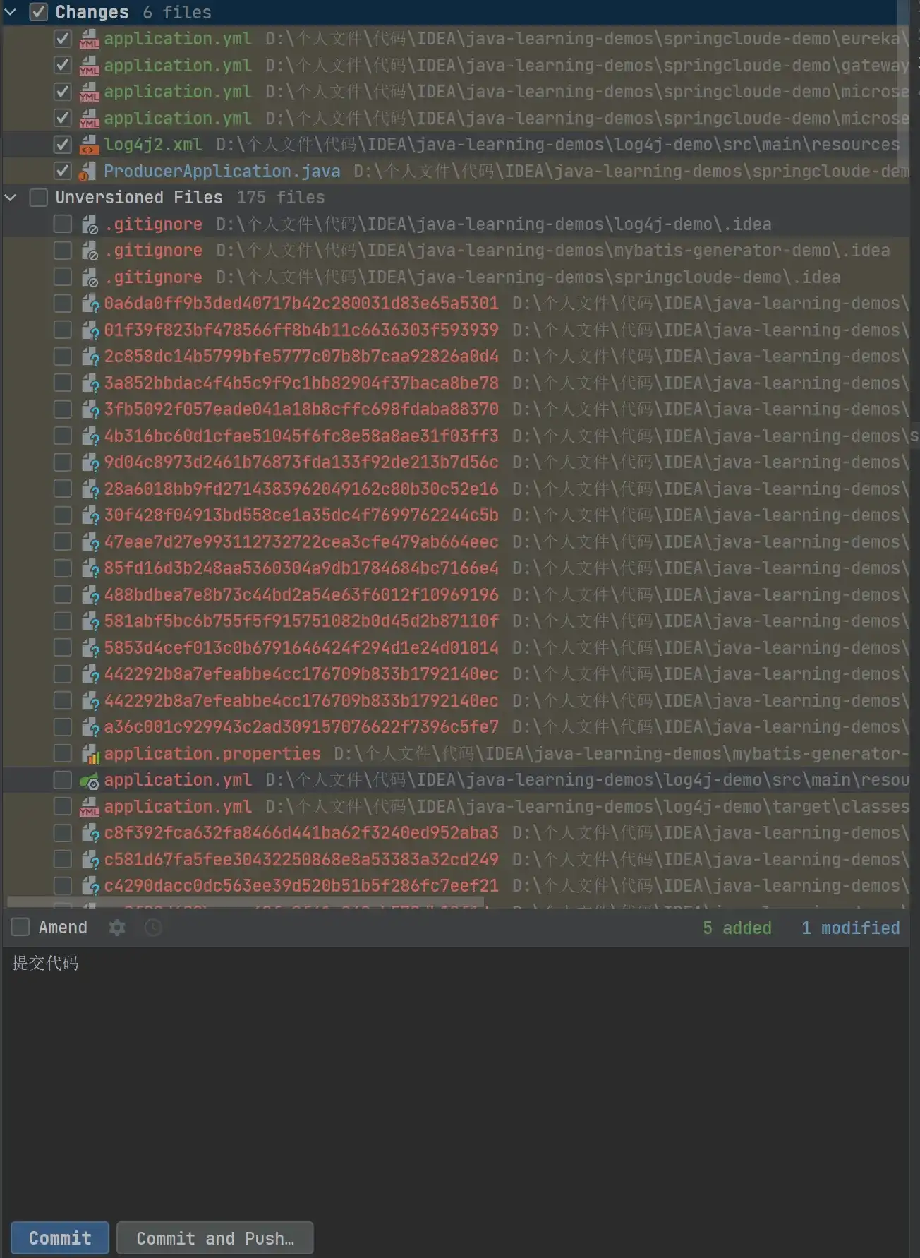 通过快捷键 Ctrl + K 打开代码提交工作区,可以看到文件会被标识成不同的颜色,一般是红色、绿色、蓝色,三者的意义分别代表如下: